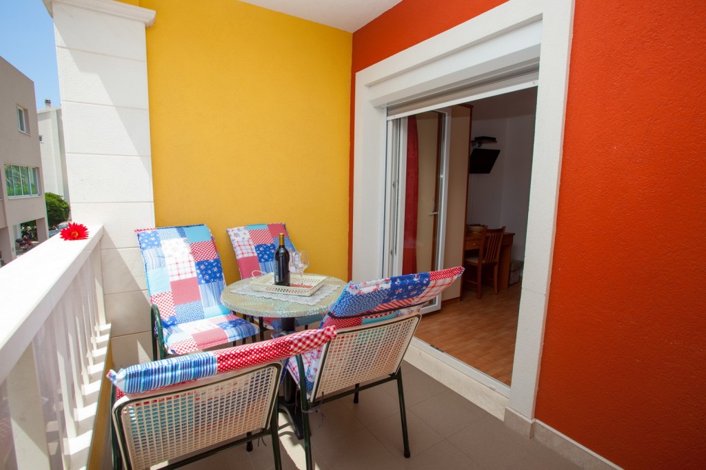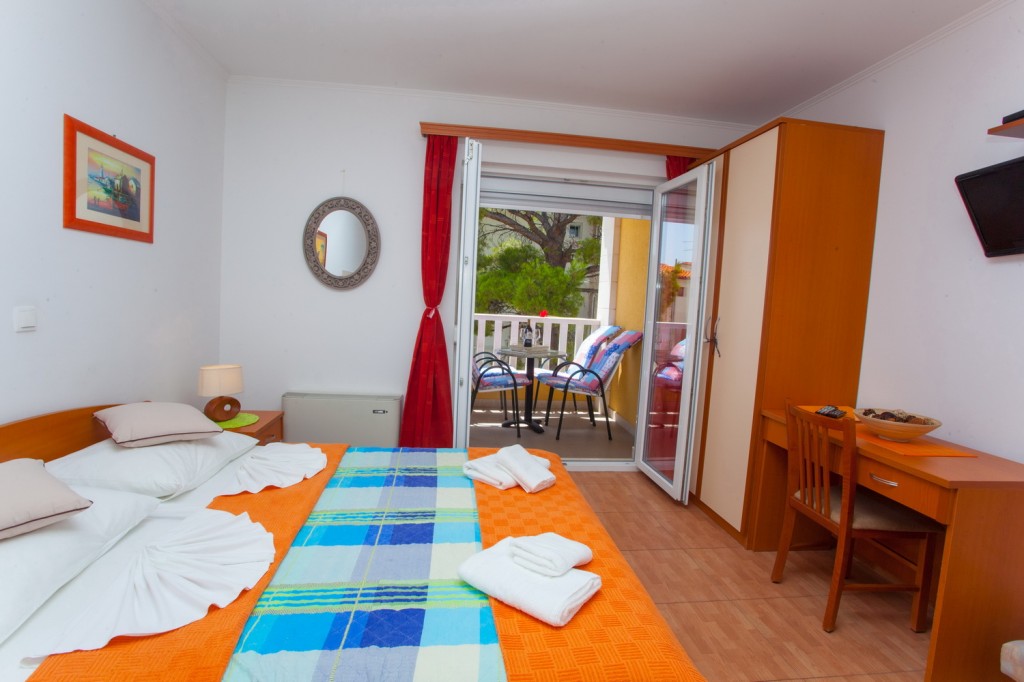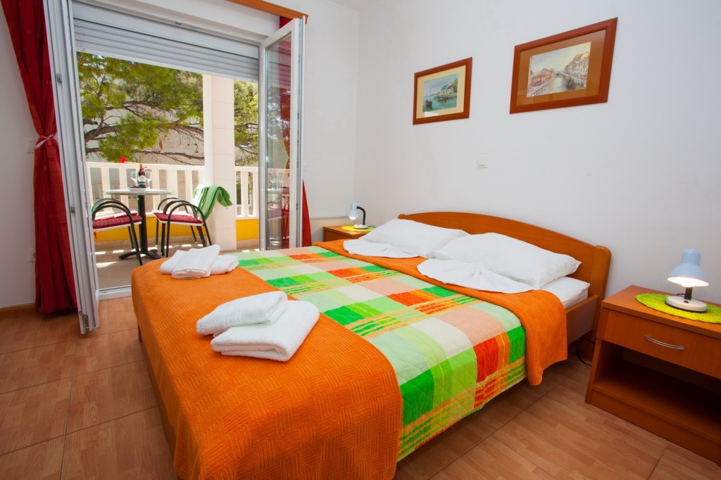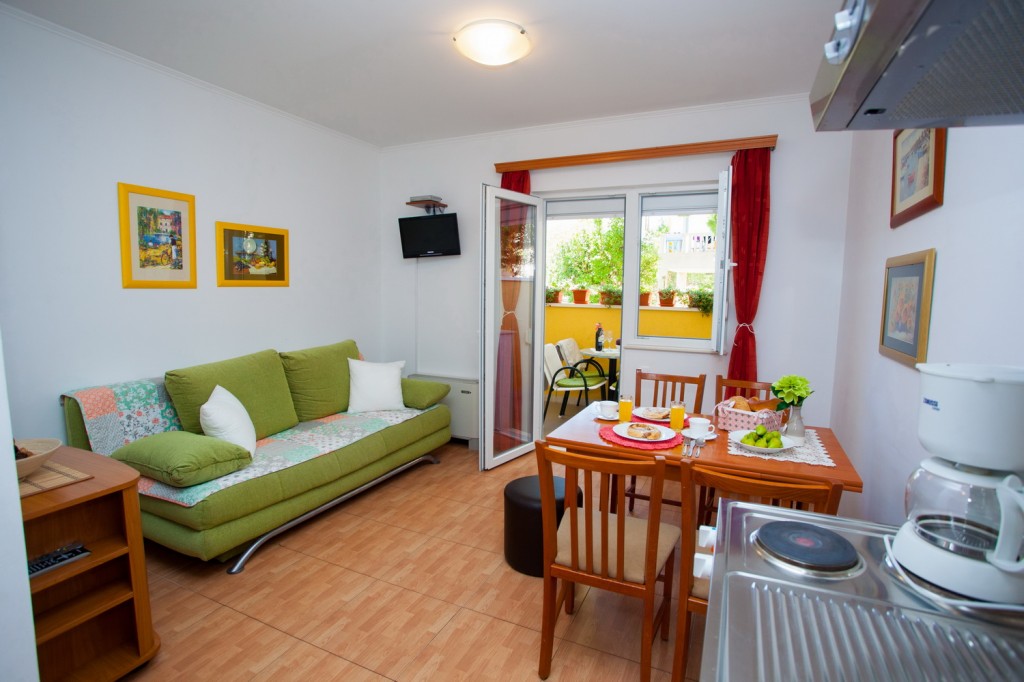 Studio apartman broj 5 nalazi se na prvom katu objekta. Sastoji se od jedne prostorije u kojoj se nalazi mini kuhinja, stol, stolicama, bračni krevet za dvije osobe, WC s tušem i balkon okrenut prema prednjoj strani objekta. Čišćenje se obavlja svakodnevno, ručnici se mijenjaju dva puta tjedno,...